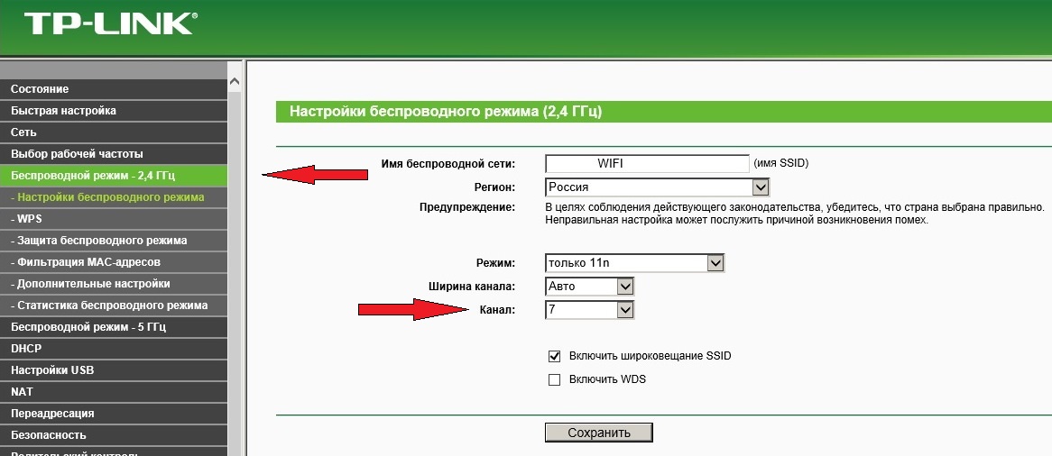 Изменяем канал в настройках маршрутизатора